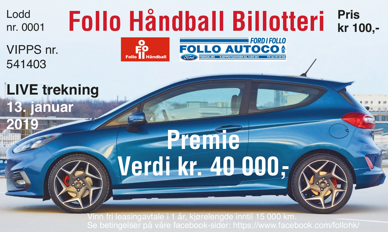 Follo Håndball lanserer nå i samarbeid med Follo Autoco – «Follo Håndball Billotteri»