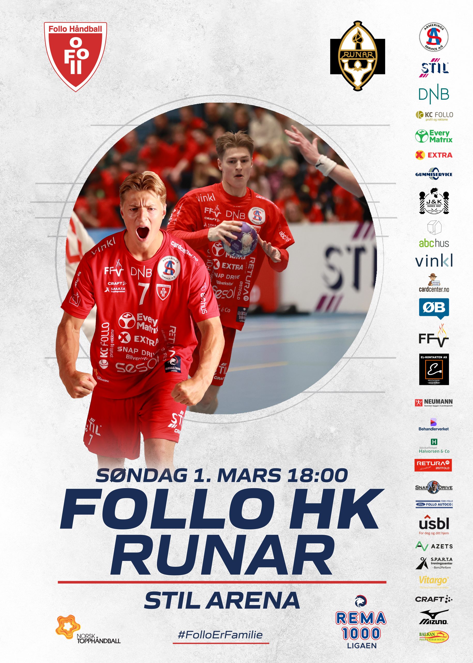 Kommende søndag tar Follo imot Runar i Stil Arena. Runar ble i romjulen Norgesmester etter å ha beseiret Kolstad. Finalen ble avgjort straffekast. På Runar-laget finner vi flere tidligere Follo profiler. Keeper Viktor Warrer kom til Runar foran årets sesong. Viktor voktet Follo målet i tre sesonger og gjorde sine saker meget godt som vår sisteskanse. Ski-gutten Sivert Tryggestad er også en meget god keeper. Sivert kom til Follo i sin tid fra vår samarbeidsklubb Ski Håndball. Tryggestad skal neste sesong vokte målet for ØIF Arendal. Linjespiller Sander Myklebust er opprinnelig fra Langhus. Han spilte i Follo før han dro videre til BSK. Sander har spilt i klubbene Langhus, Kolbotn, Follo, Bækkelaget og Runar. Runar har ytterligere en lokal gutt i sin spillerstall. Runar keeper Mats Bjørnstad er opprinnelig fra Kolbotn. I forkant av denne sesongen ble Bjørnstad dessverre skadet og han har ikke vært banen så langt i sesongen. Imidlertid er han ofte med på benken i Runars trenerapparat.