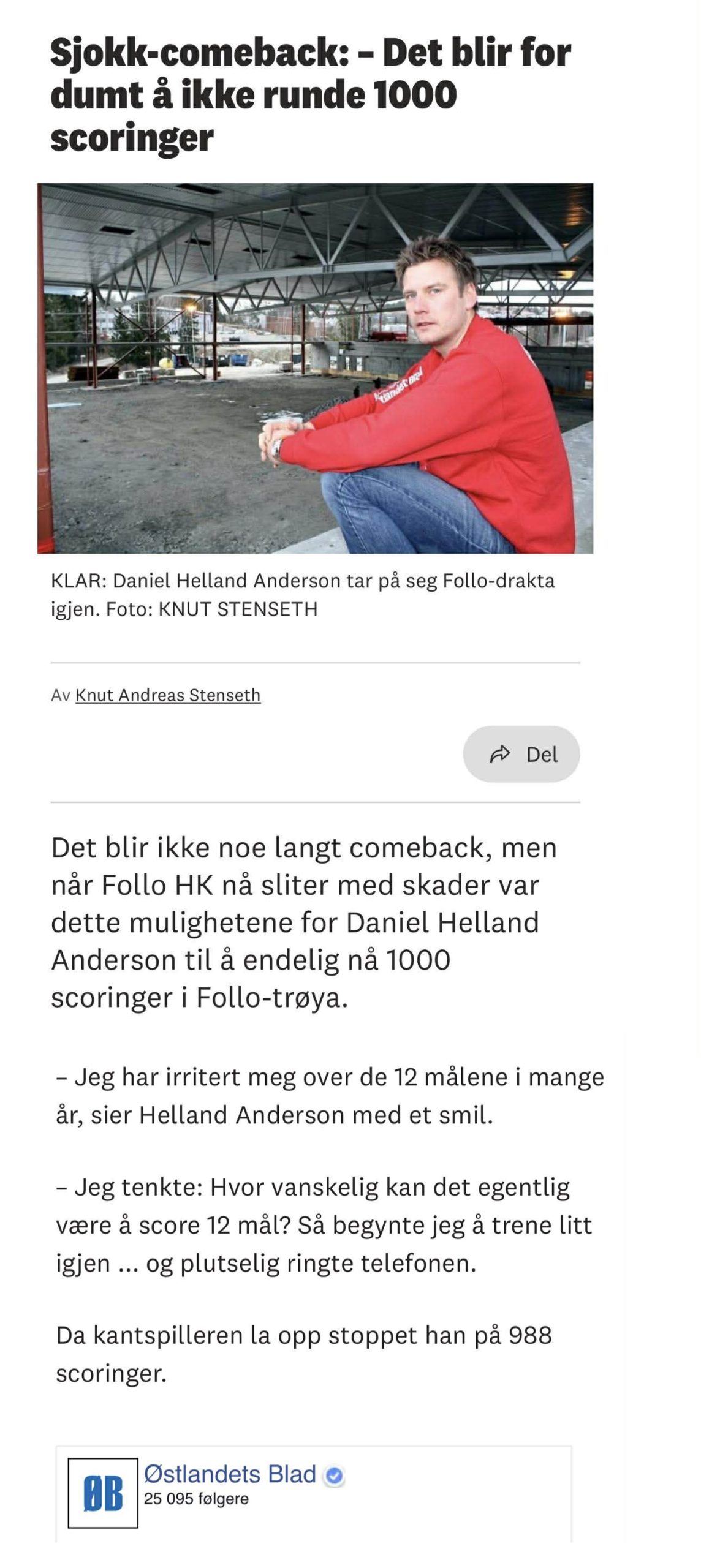 Med 988 mål for Follo HK er Helland Anderson allerede den mestscorende spillerne i klubbens historie. Likevel har tallet 1000 levd sitt eget liv i kulissene i mange år.